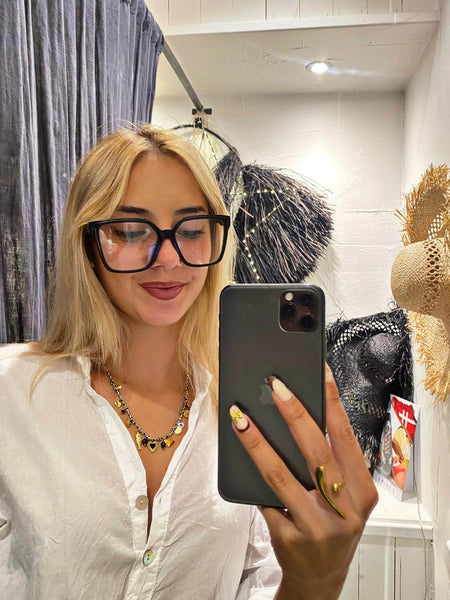 Collier sur cordon noir tressé avec fil doré, gris et blanc