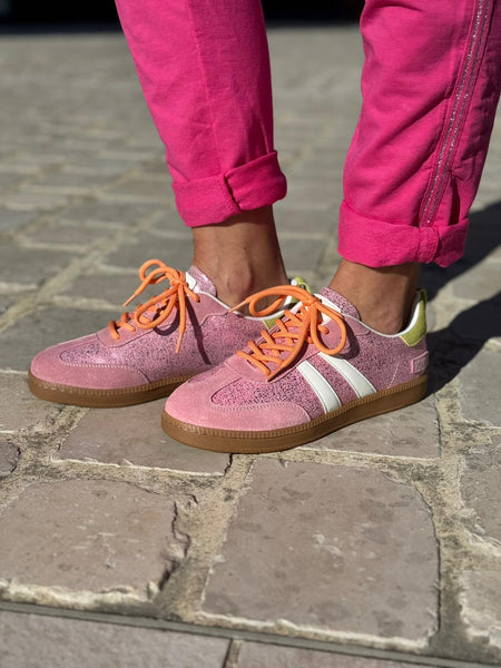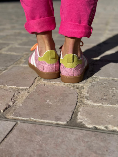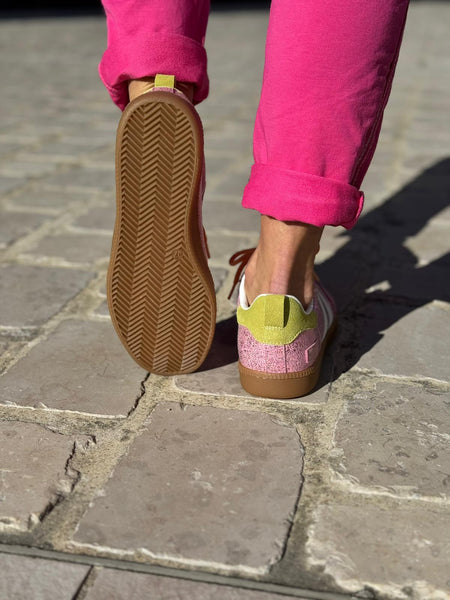 Baskets basses femme vert pastel et rose au style casual, faciles à porter au quotidien