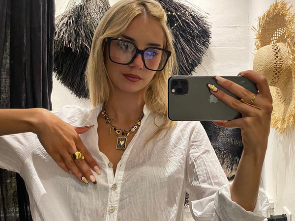 Pendentif rectangulaire décoré d’un cœur doré au centre