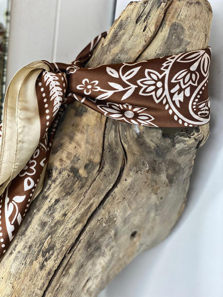 Se noue facilement autour du cou, dans les cheveux, au poignet ou en accessoire sur un sac