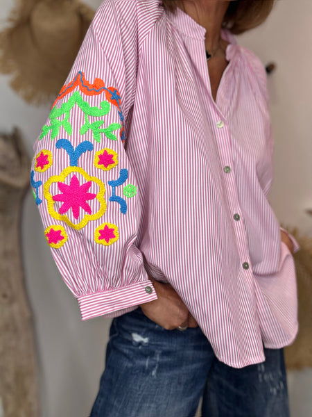 • Broderies multicolores sur les manches