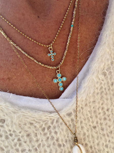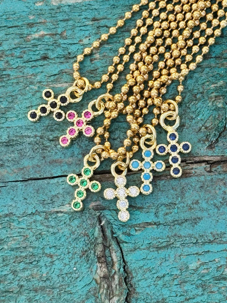 Collier châine billes acier inoxydable - longueur 42cm - croix 11mm (6 coloris)