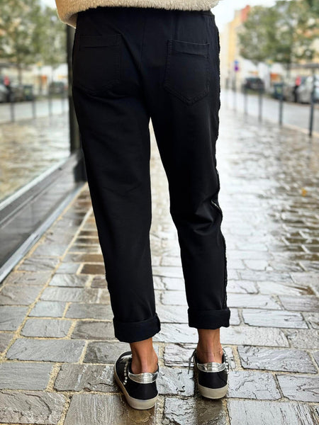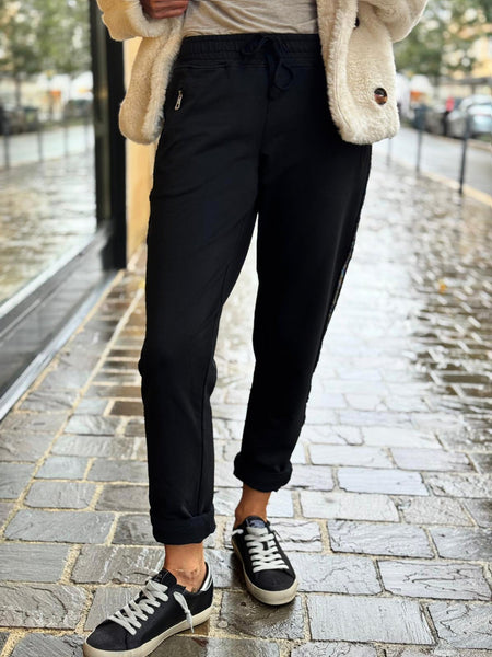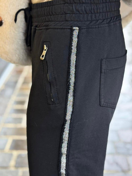 - Finition bande latérale pailletée argenté sur chaque jambe