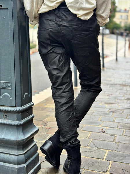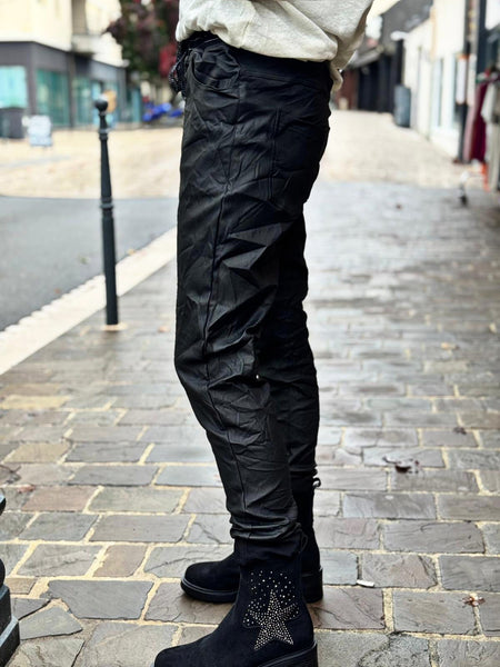 - Pour garder l’effet froissé : tordre le pantalon avant le séchage et le laisser sécher tel quel.