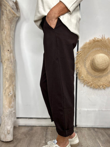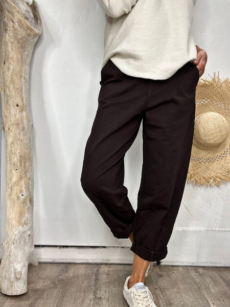 • Pantalon forme carotte, matière style jersey lourd lycra trés confort