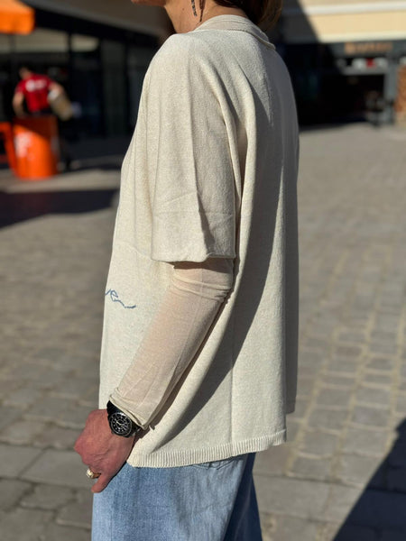 - Grand cœur écru en maille sur le devant