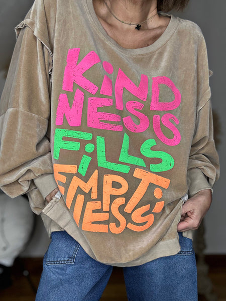 • Message imprimé multicolore sur le devant "KINDNESS FILLS EMPTINESS"