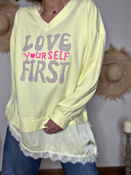 • Message « LOVE YOURSELF FIRST » sur le devant