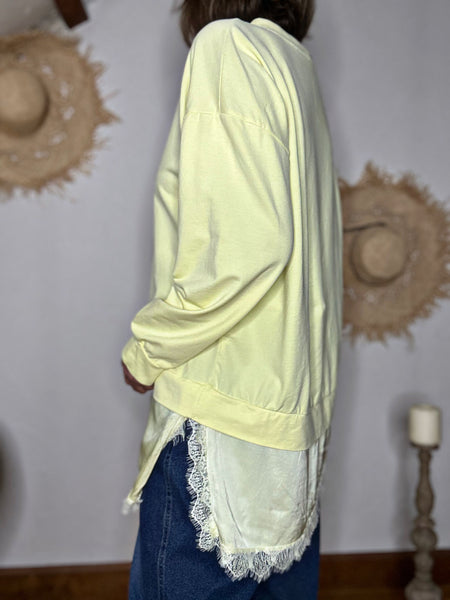 • Bas en trompe-l’œil : effet superposition avec empiècement tissu satiné et dentelle intégrée