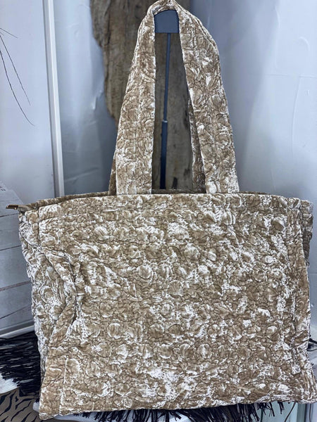 - Anses : deux anses en velours assorti, permettant un porté épaule ou main