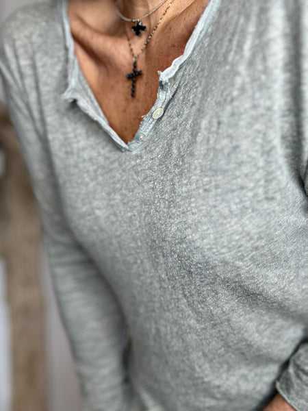 • Poignets et bas du tee shirt bord brut avec couture apparente