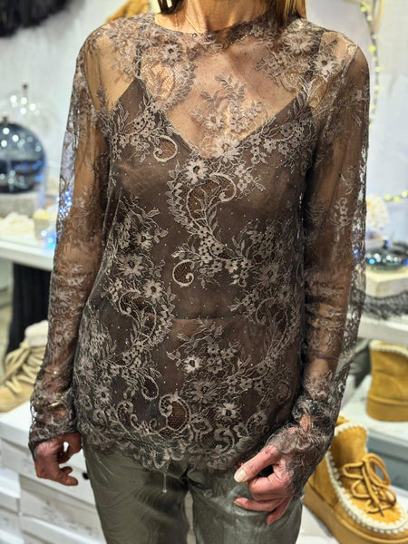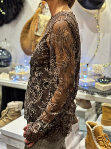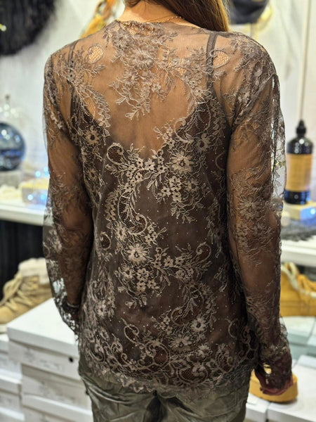 • Manches longues entièrement en dentelle, poignets à bord découpé